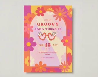 Groovy Birthday Party Invitation , Personalized, Groovy, Groovy Girl ...