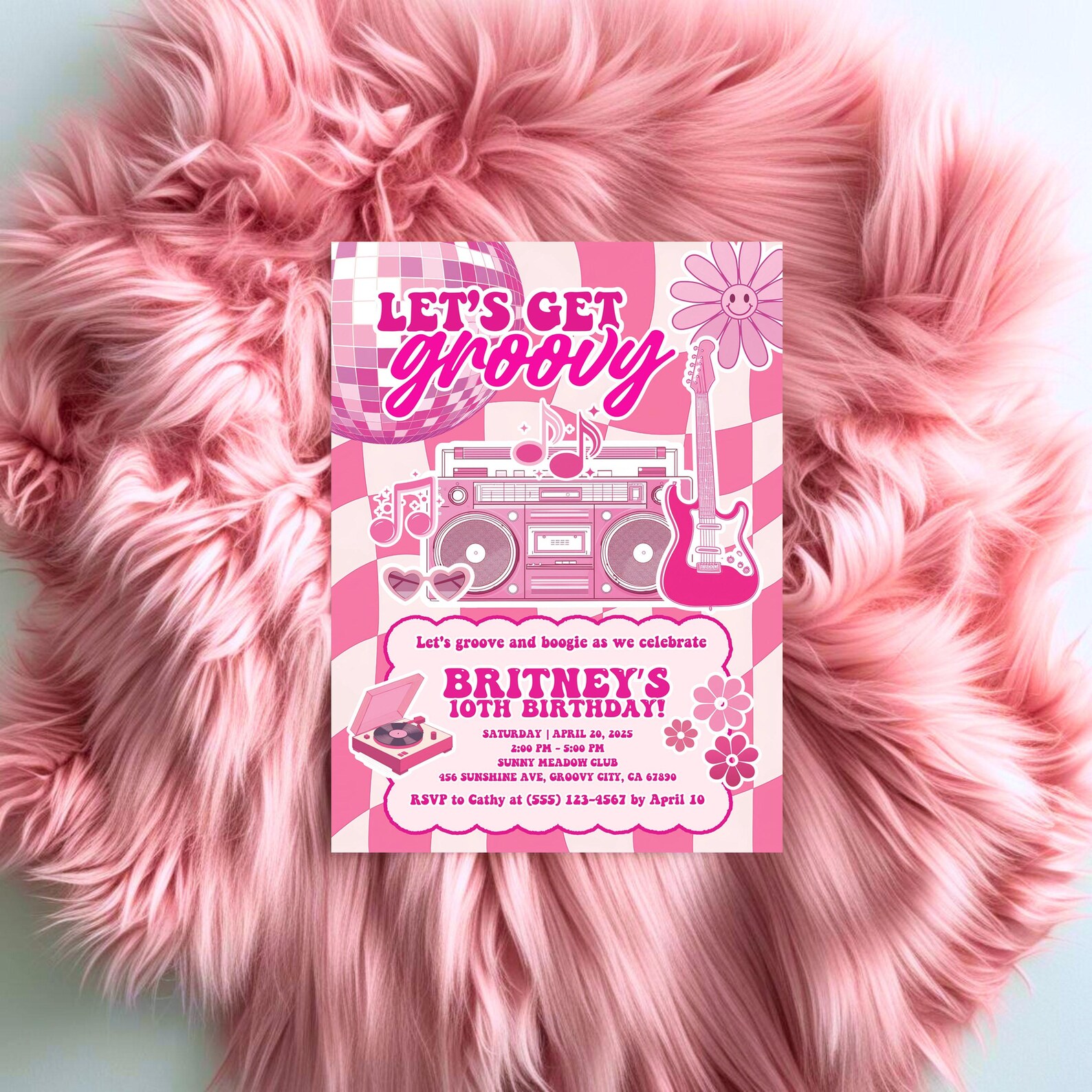 Pink Groovy Retro Birthday Invitation, Retro Groovy Birthday Invitation ...