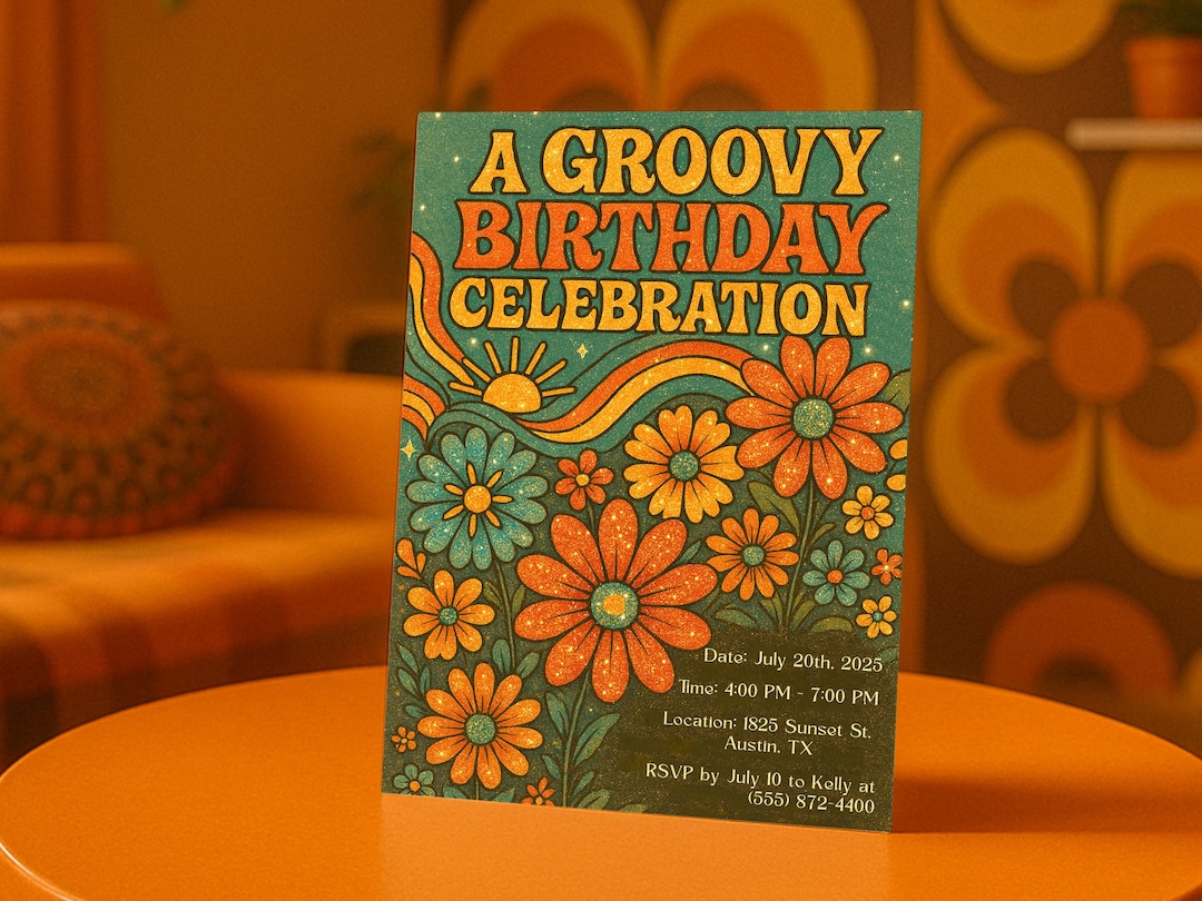 Retro Hippie 70's 60's Groovy Birthday Party Invitation
