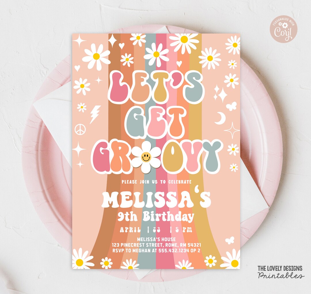 Groovy Birthday, Editable, Any Age, Retro Birthday, Hippie Party ...