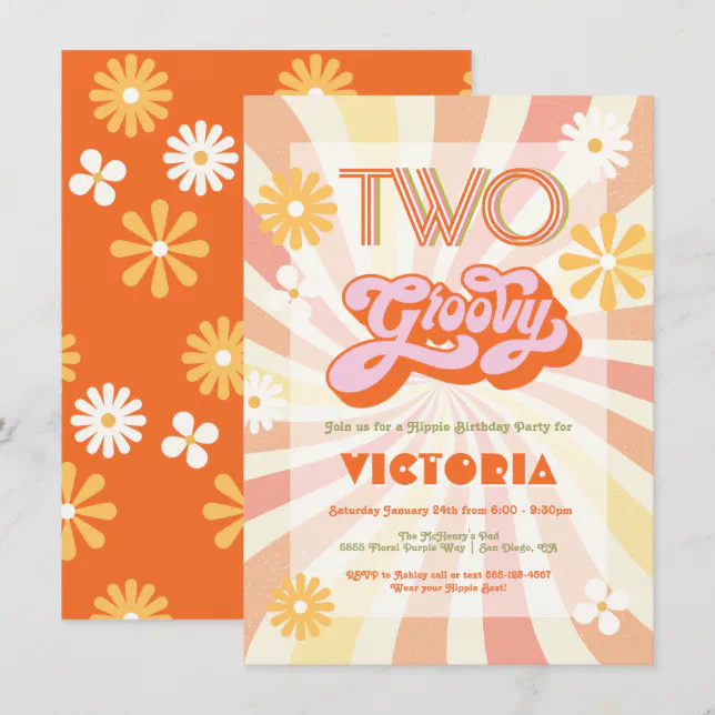 Two Groovy Birthday Invitation, Hippie, Retro, 70's Vibe, 2nd Birthday ...
