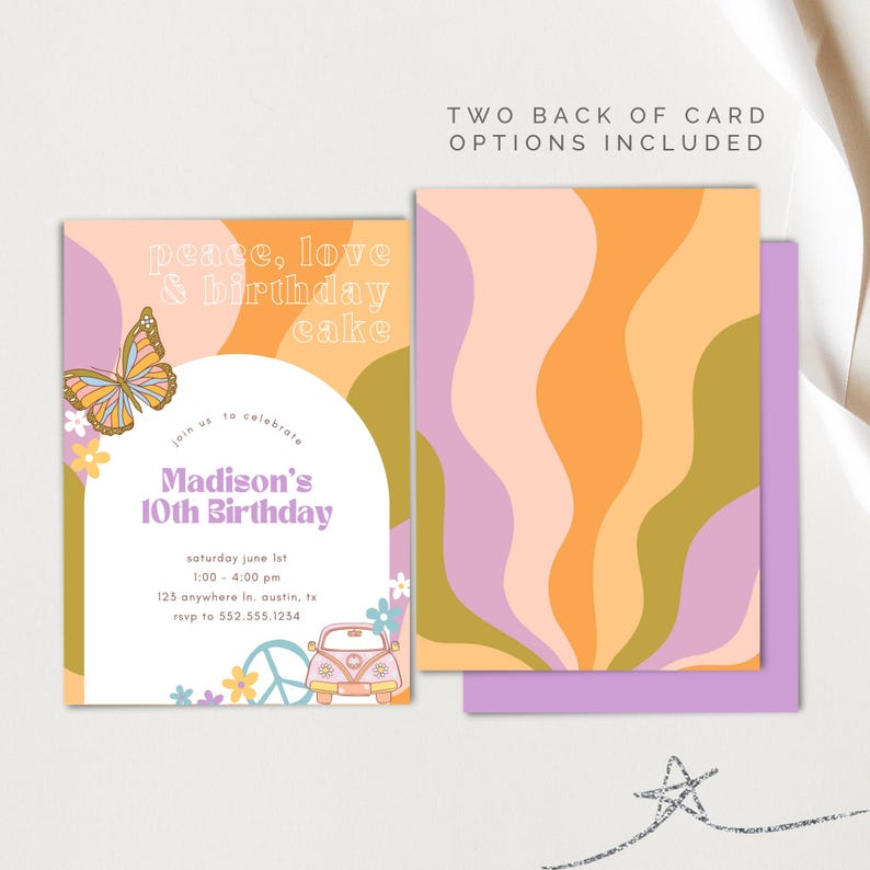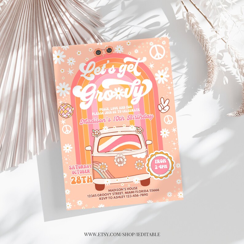 Editable Groovy Birthday Invitation, Hippie Birthday Invite, 70's Theme ...