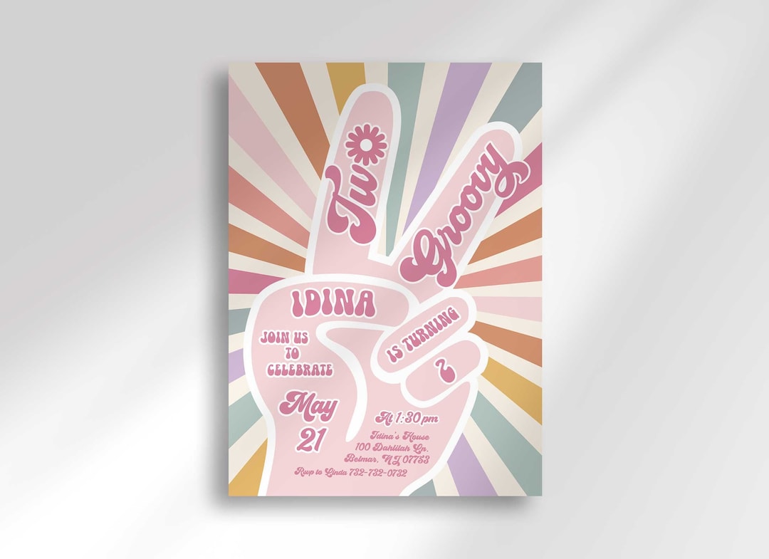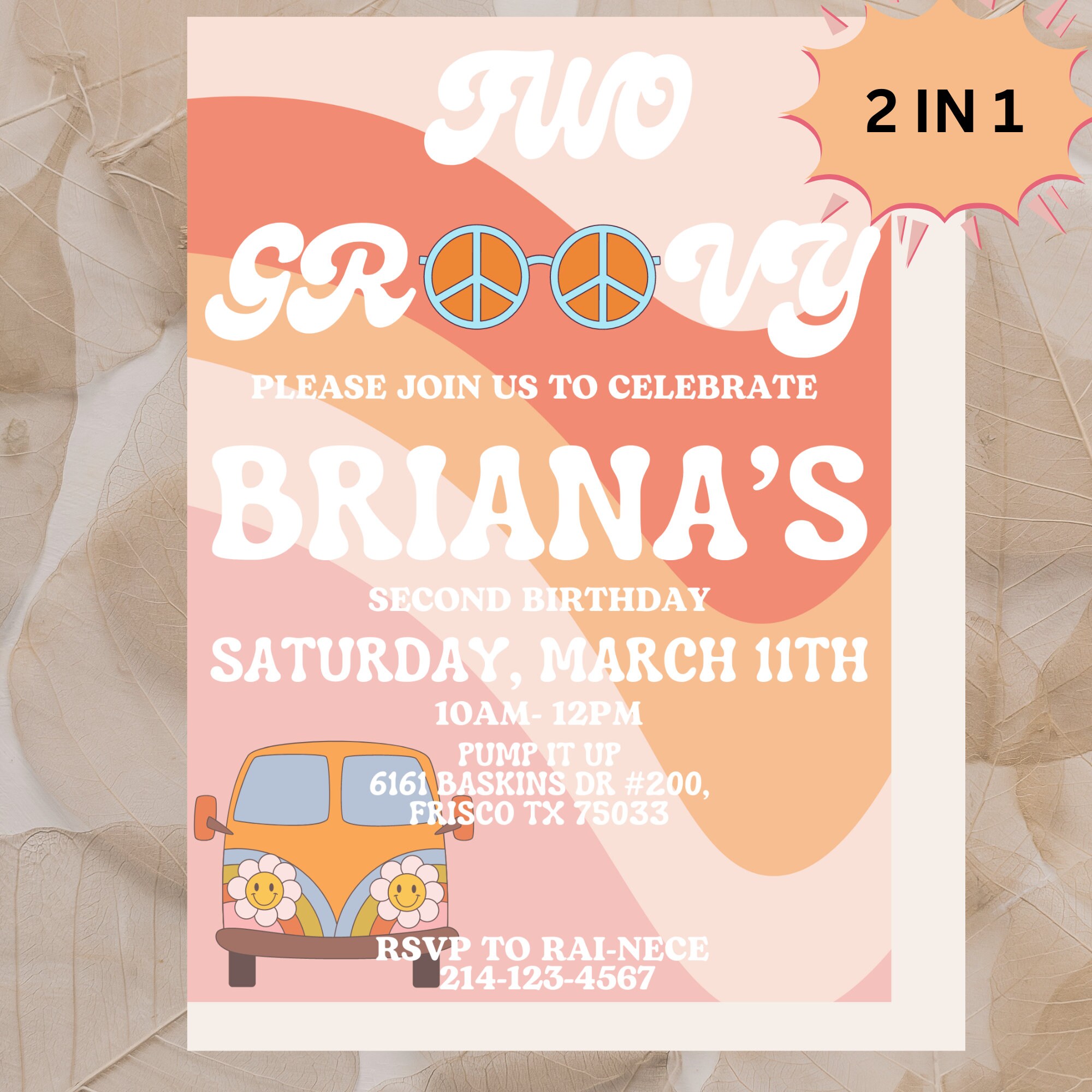 Two Groovy Birthday Invitation, Hippie, Retro, 70's Vibe, 2nd Birthday ...