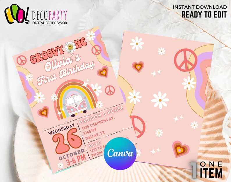 Editable groovy retro 1st birthday party invitation stay etsy – Artofit
