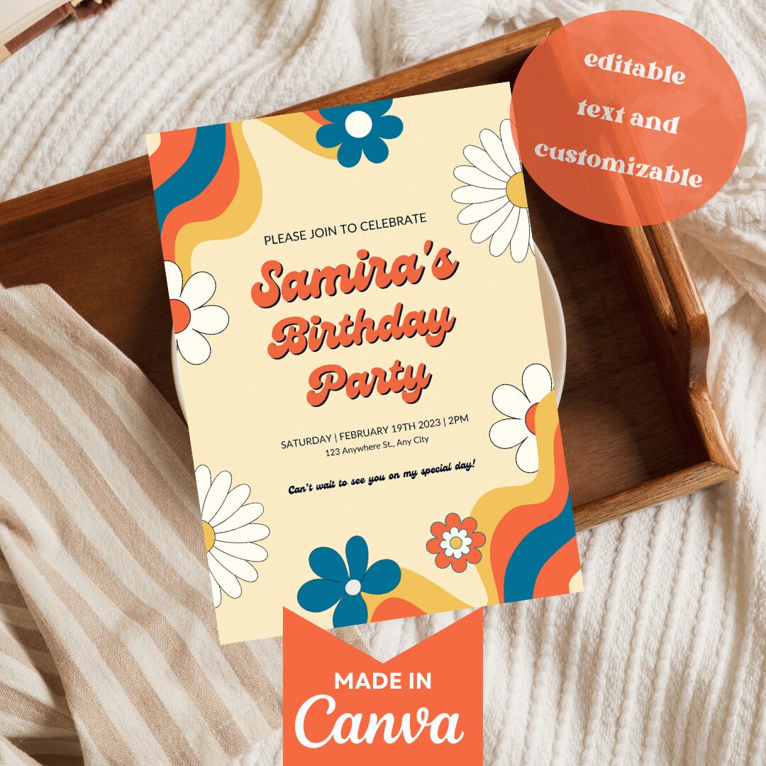Groovy Birthday Invitation Template Digital Template Canva - Etsy