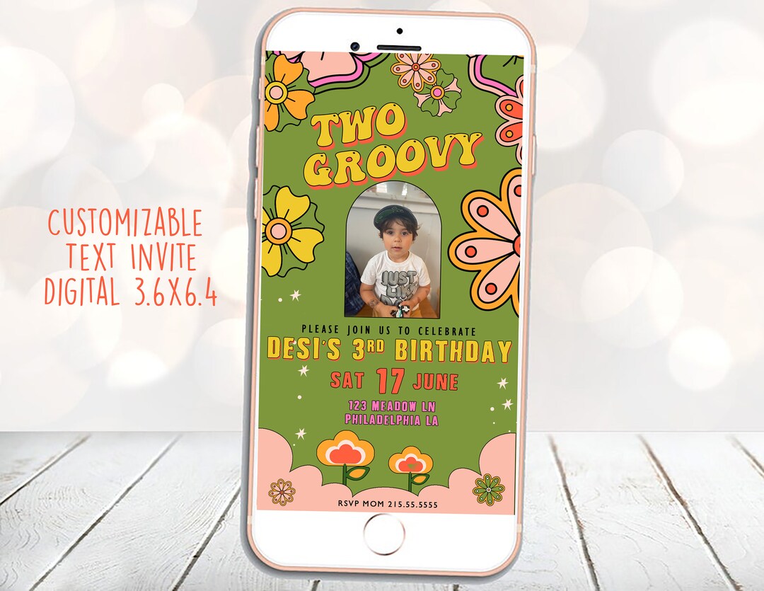 Two Groovy Invitation, Hippy Birthday Invite, Groovy Birthday, Digital ...
