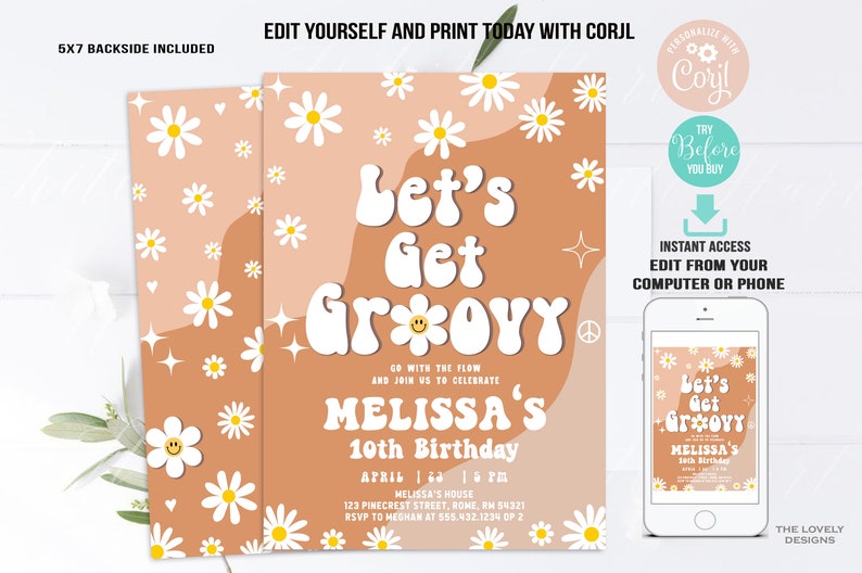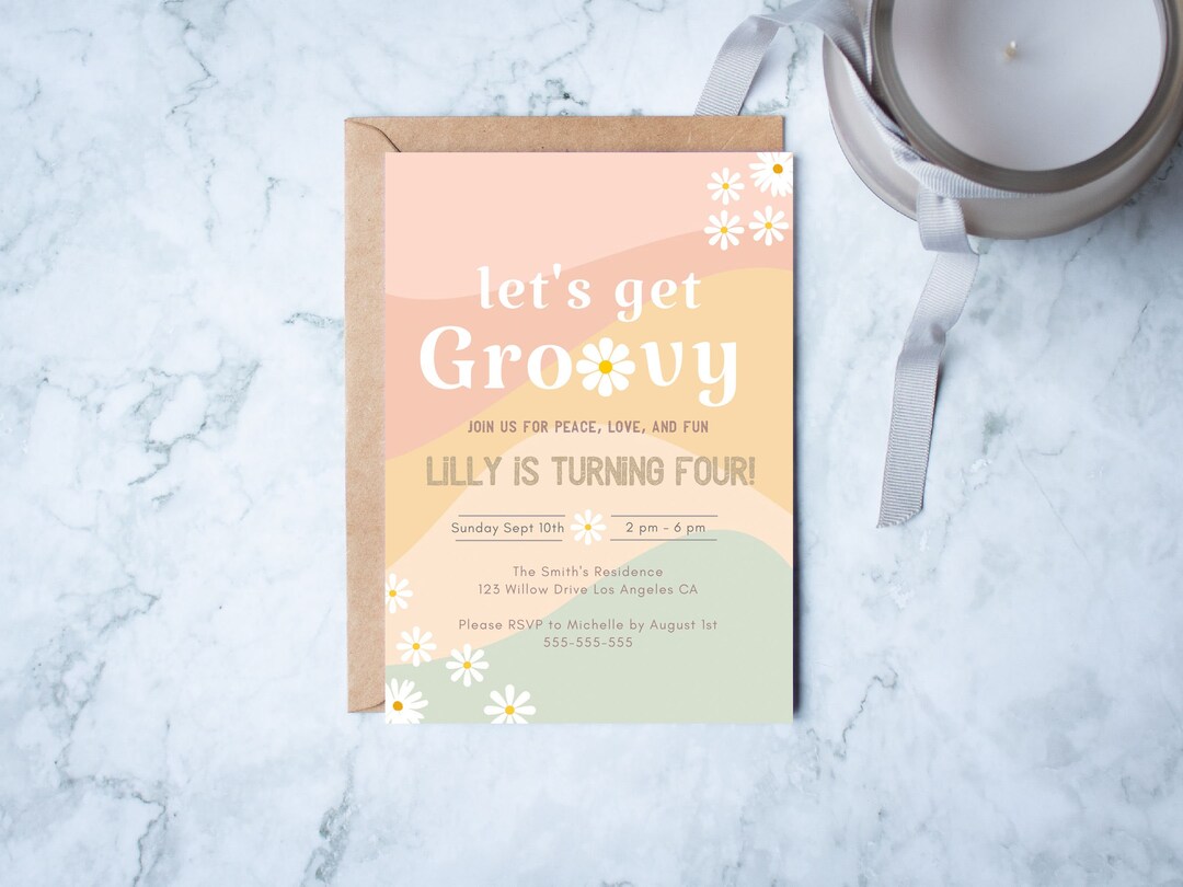Editable ANY AGE Groovy Birthday Invitation Let's Get Groovy Daisy ...
