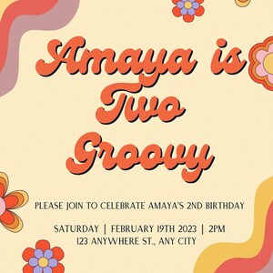 Two Groovy Editable and Digital Birthday Invitation Template - Etsy