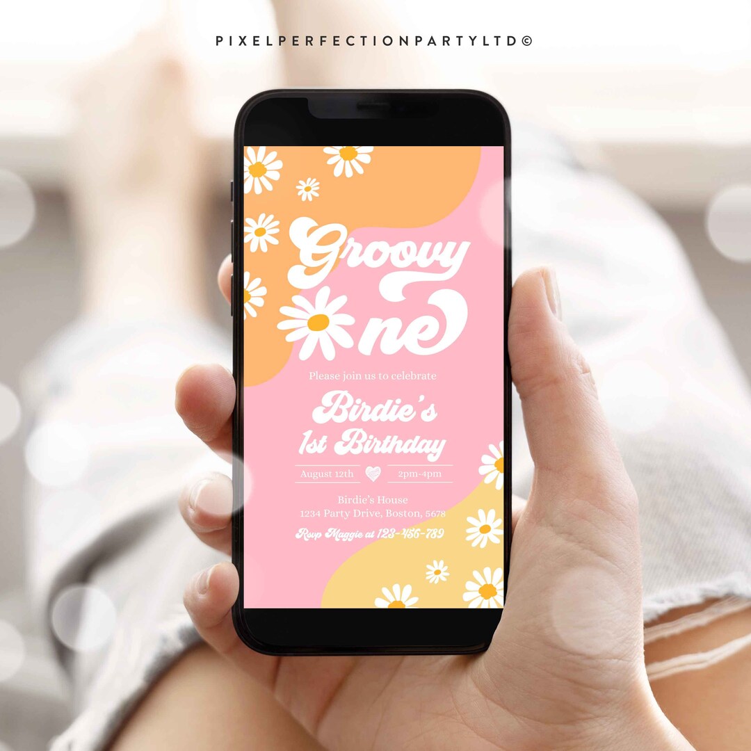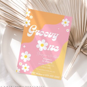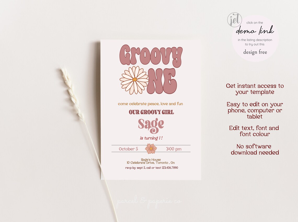 Editable Groovy One Invite, Groovy One First Birthday Invitation ...