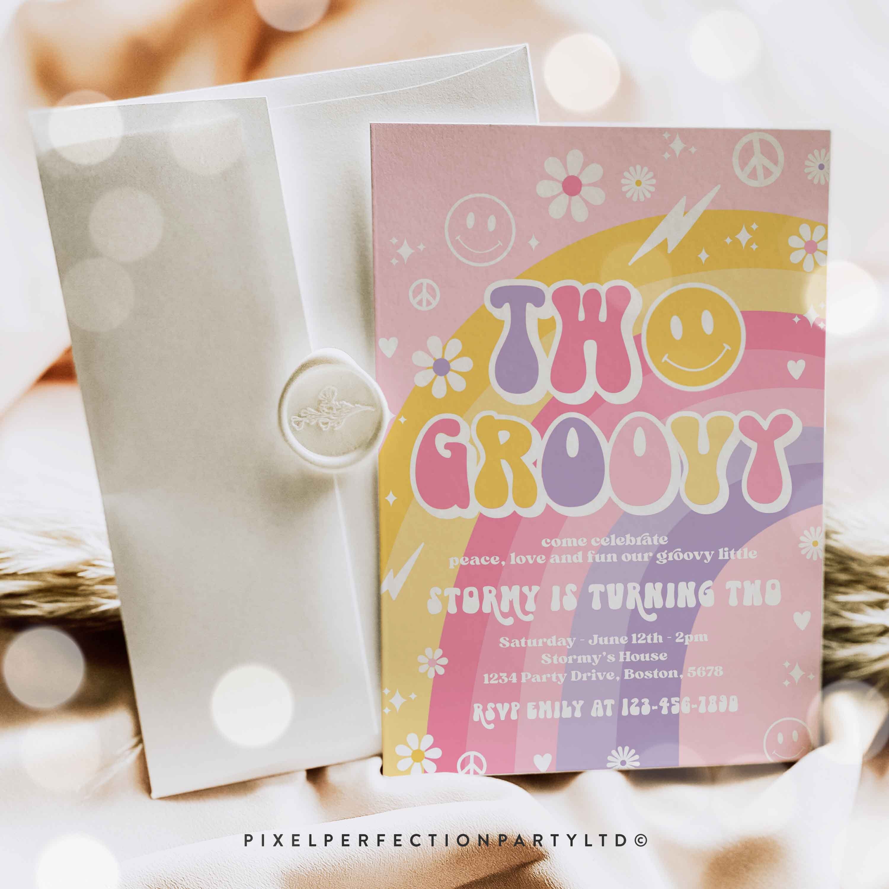 Two Groovy Invitation Editable 2nd Birthday Groovy Retro Two Groovy ...