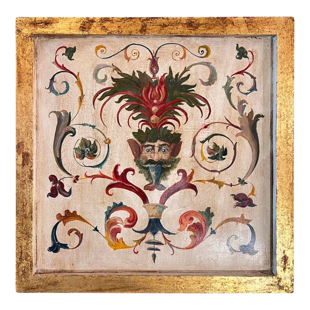 Italian Grotesque Style Oil on Wood Wall Hanging Panel Painting With ...
