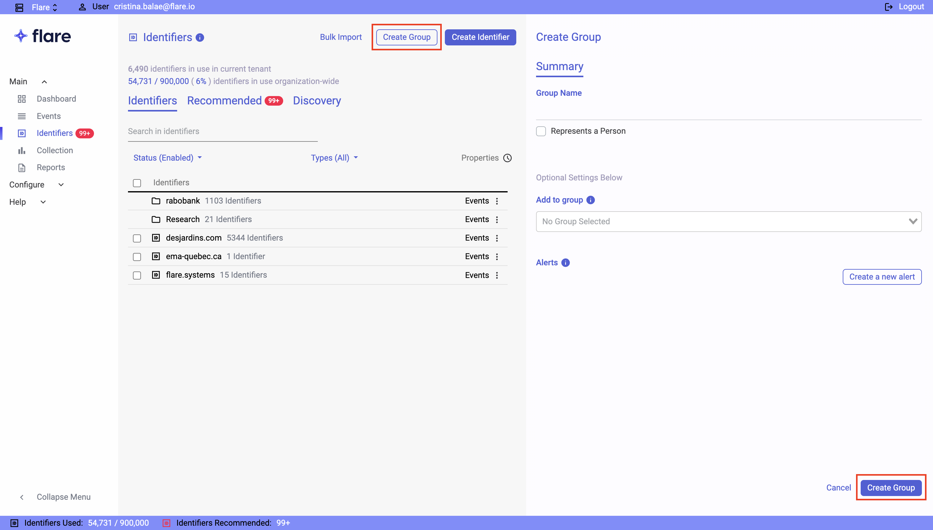 Coherent groups (and subgroups) of identifiers for each element and ...