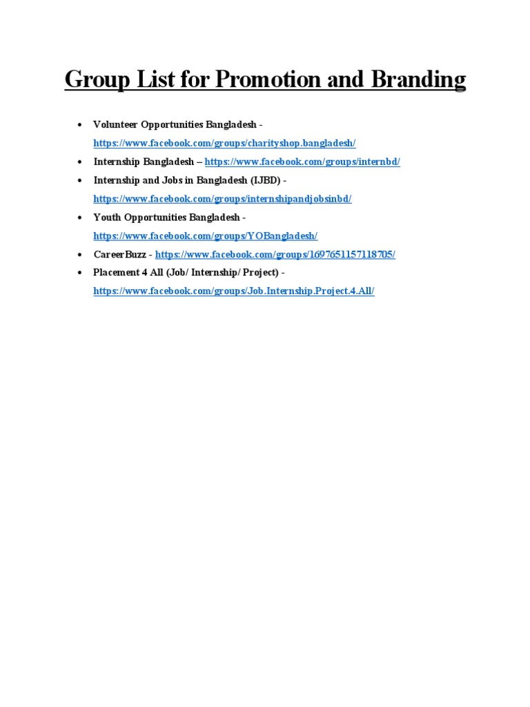 Group List For Promotion and Branding | PDF | Career & Growth | Social ...