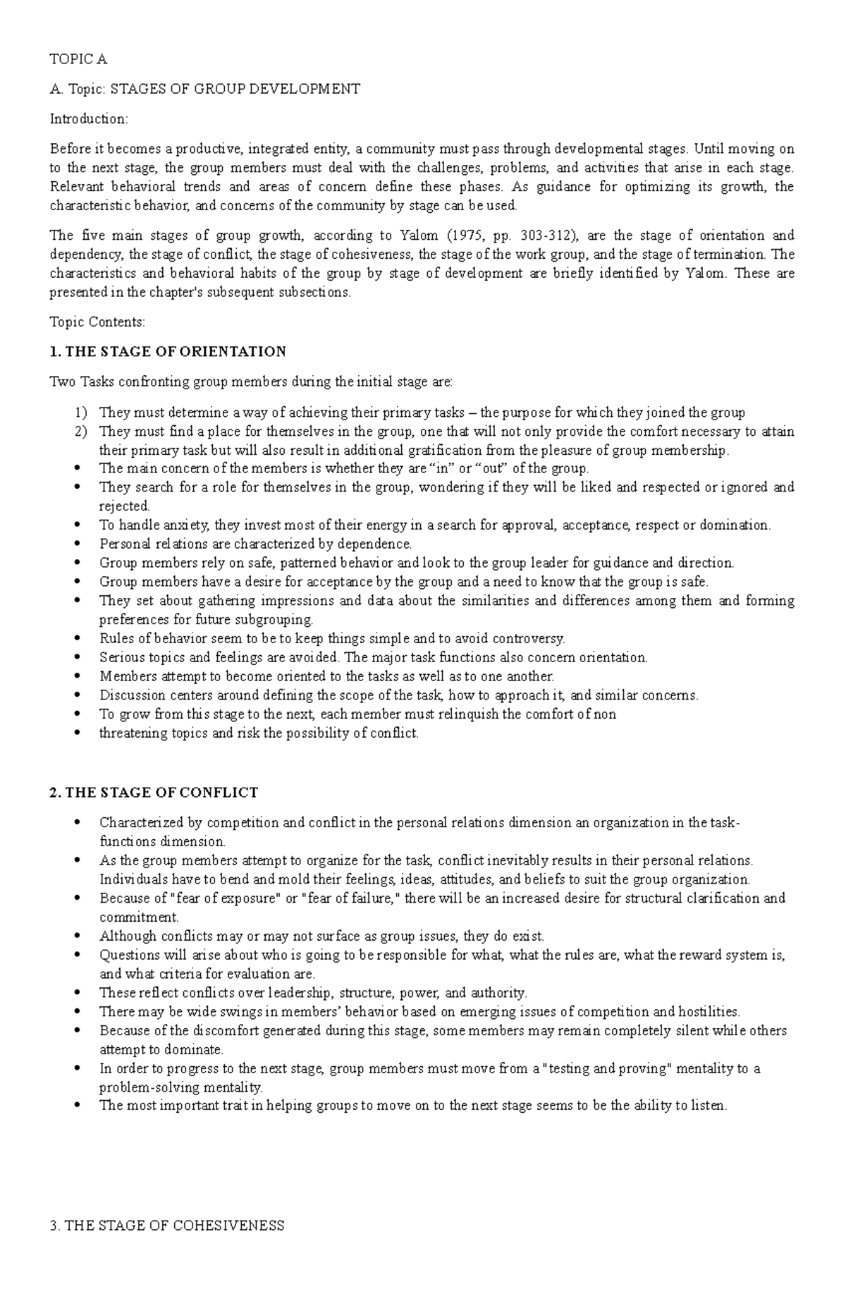 Topic A chn notes - TOPIC A A. Topic: STAGES OF GROUP DEVELOPMENT ...
