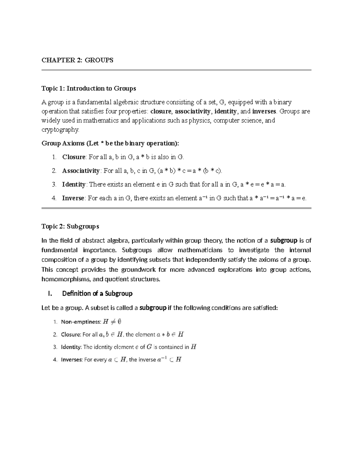 Chapter-2 - NOTES - CHAPTER 2: GROUPS Topic 1: Introduction to Groups A ...