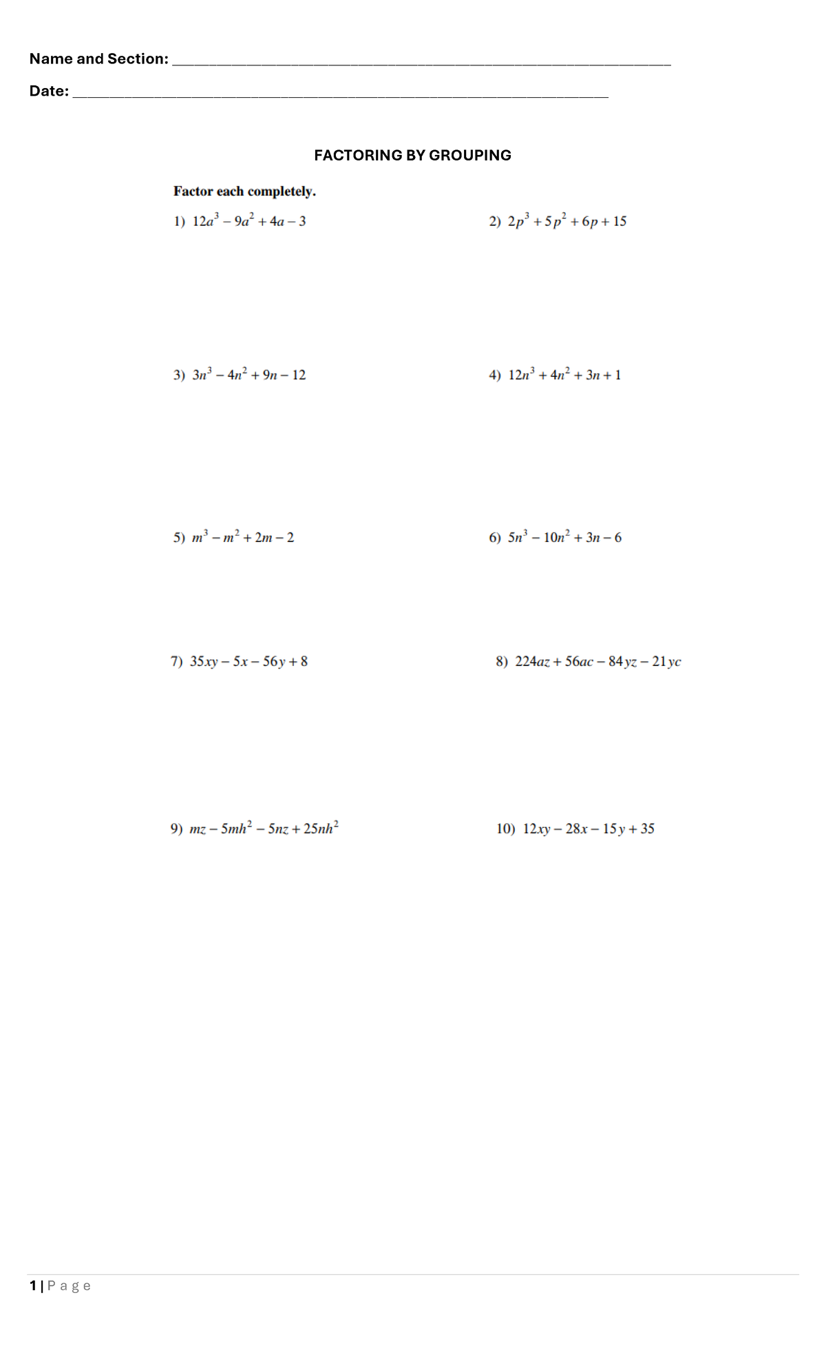Factor by Grouping Worksheet: The Ultimate Cheat Sheet & Guide ...
