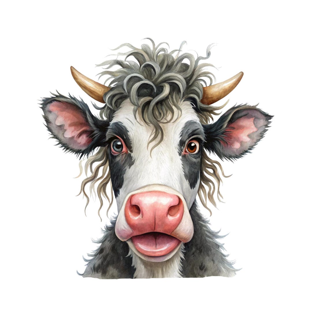 Watercolor Funny Grumpy Cow Clipart Graphic by ChawniPrint · Creative ...