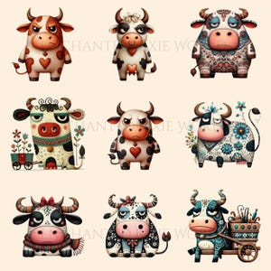 Grumpy Cow Clipart Pack Whimsical Folk Art Illustrations With Playful ...