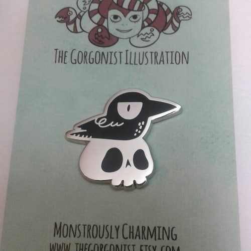 Neveryorick Grumpy Crow on a Skull Hard Literary Goth Enamel - Etsy