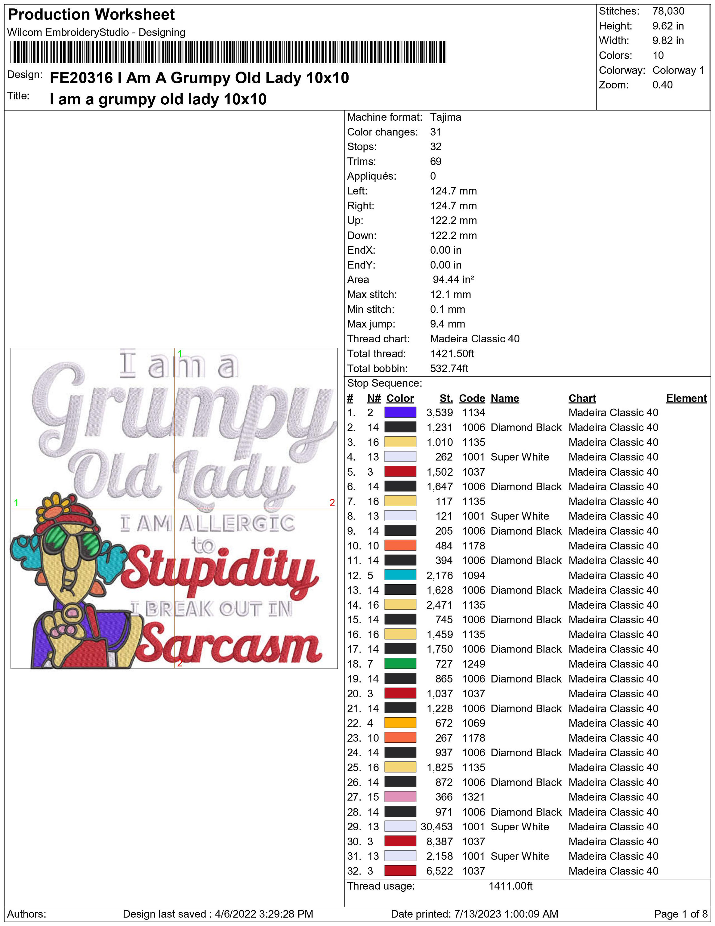 Old Lady Embroidery Design I Am A Grumpy Lady Machine Embroidery ...