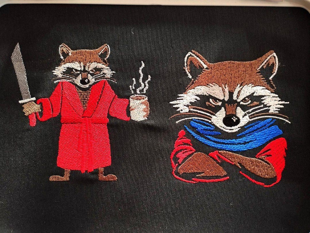 Funny Raccoon Embroidery Designs: Grumpy Coffee & Sassy Scarf (PES, DST ...