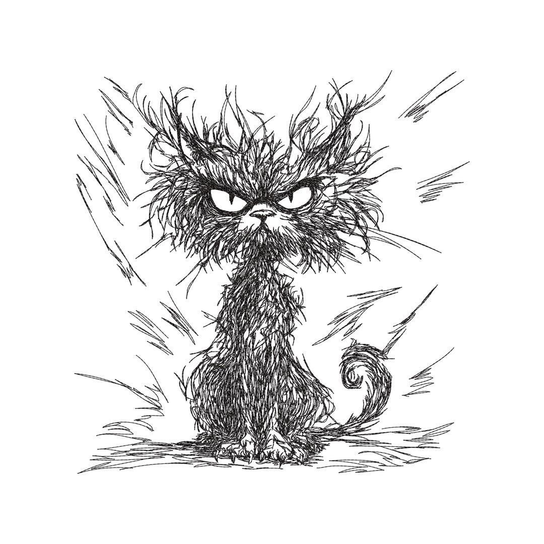 Angry Cat Embroidery Design, Sketch Line Art, Humorous Grumpy Kitty ...