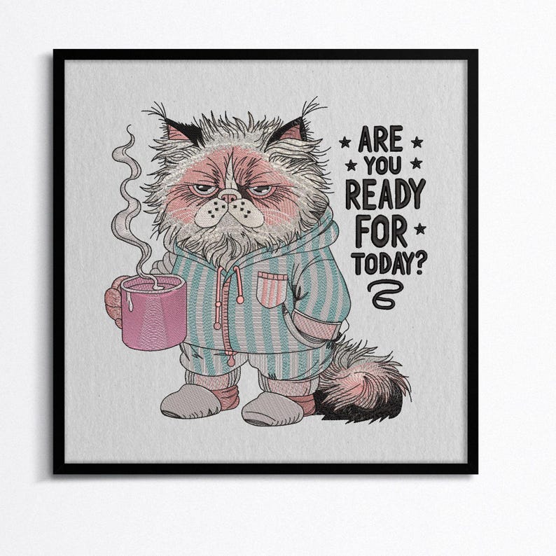 Funny Grumpy Cat Embroidery Design Humorous Cat Quote Pattern Witty ...