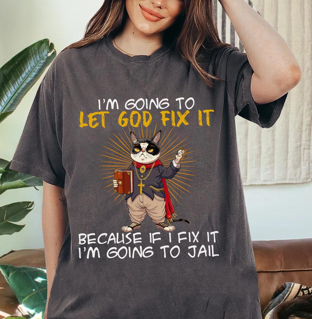 Funny Let God Fix It Cat PNG | Grumpy Religious Cat Clipart | Digital ...