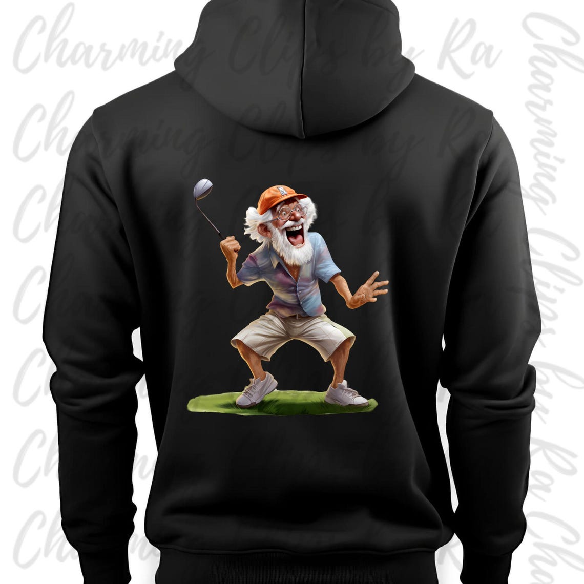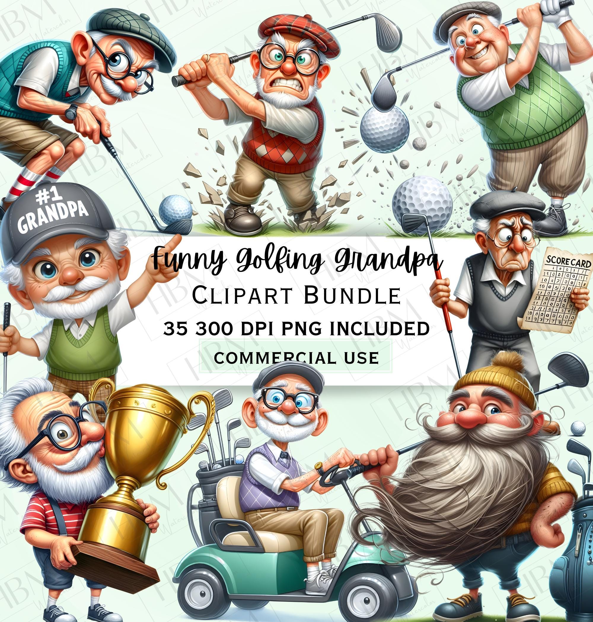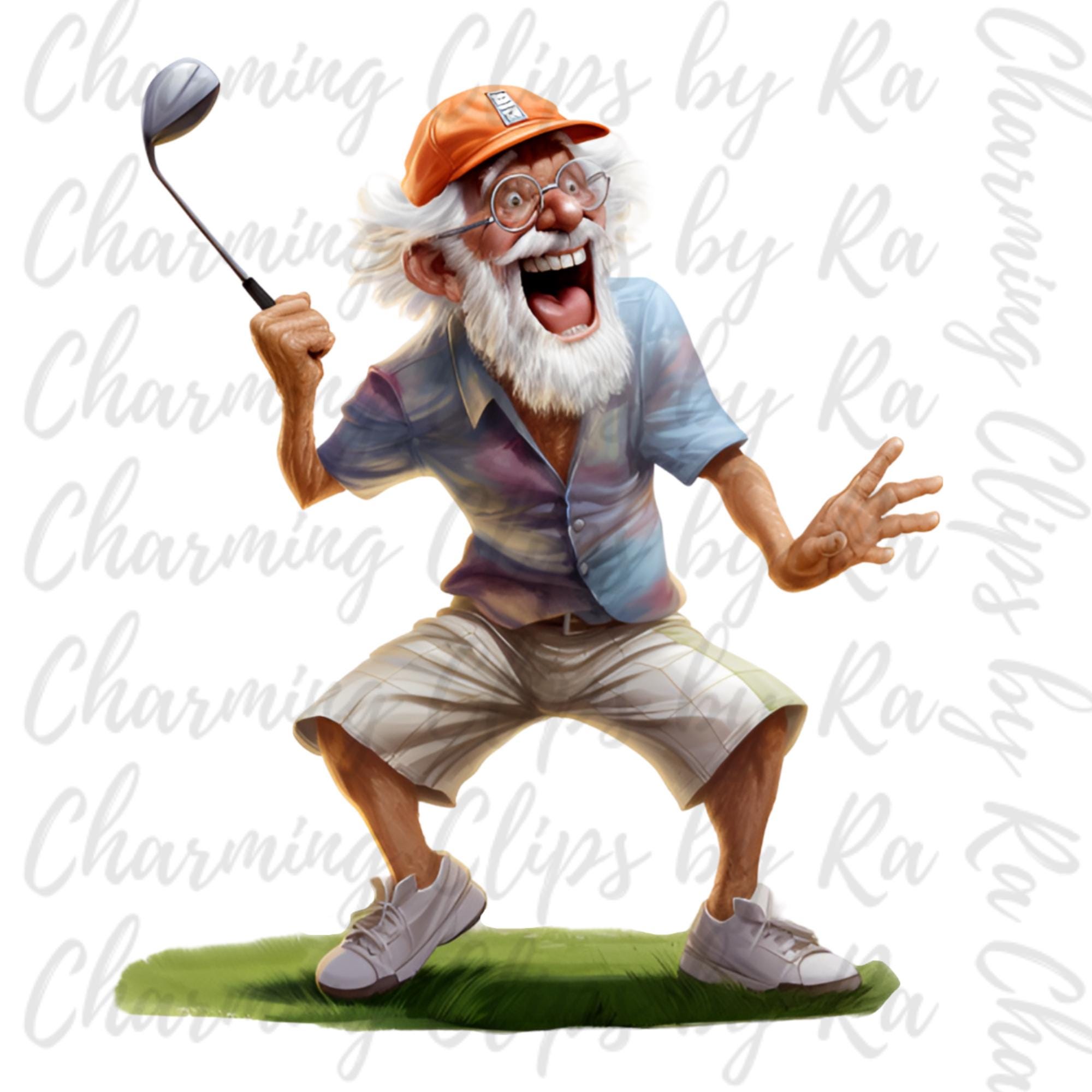 Funny Quirky Golfing Grandpa Clipart Bundle, Watercolor Old Man Sticker ...