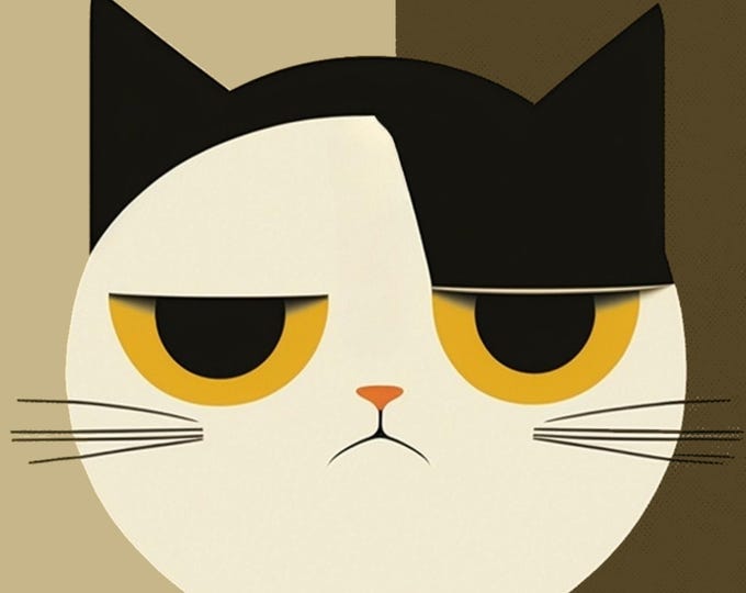 Midcentury Modern Cat, Grumpy Cat, Minimalist Cat Art, Gift for Cat ...