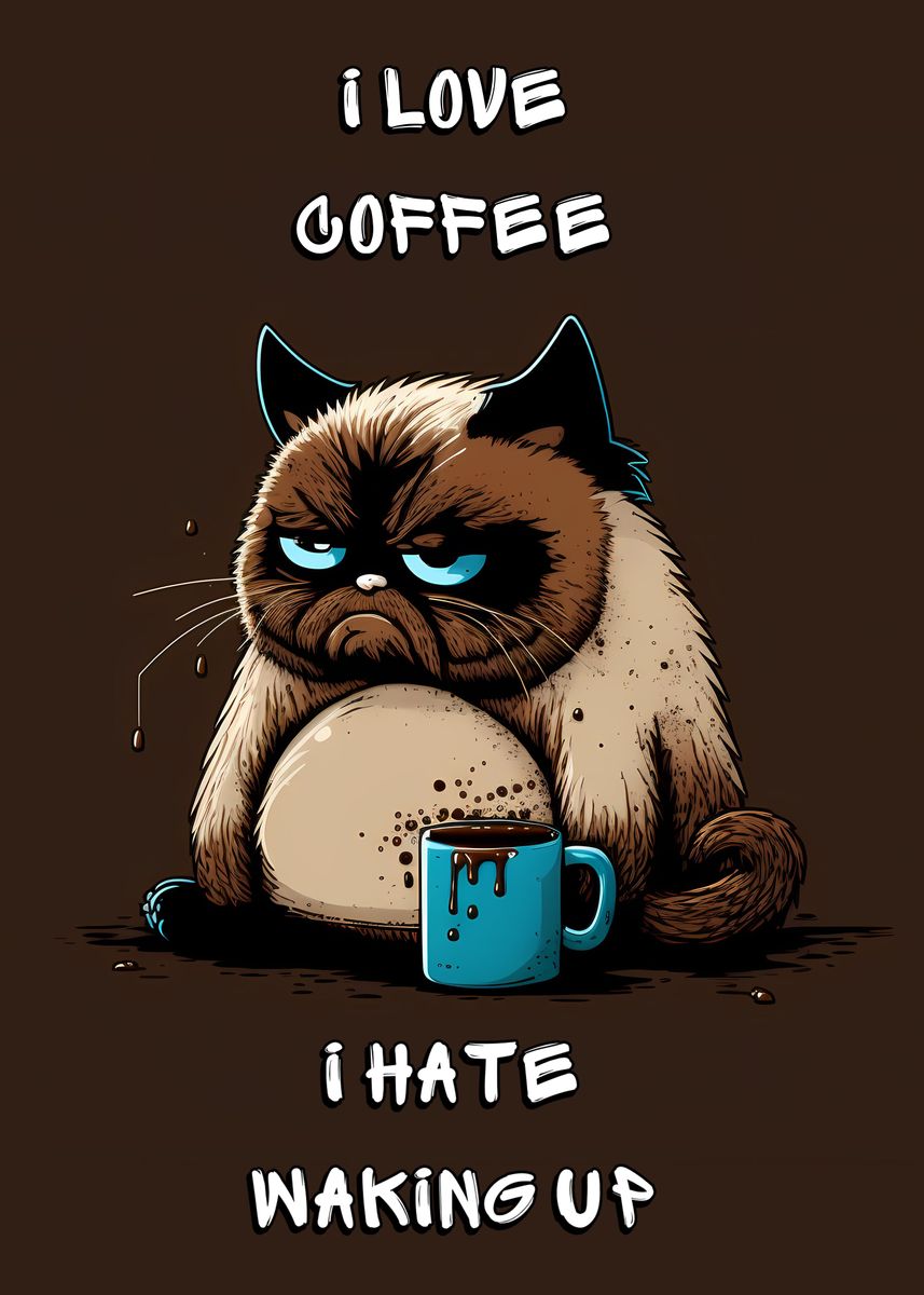 'Grumpy Morning Coffee' Poster, picture, metal print, paint by OKAGAMI ...