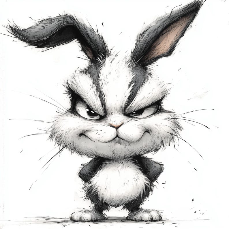 An Angry Grumpy Rabbit Illustration with Large Ears and Intense Glare ...