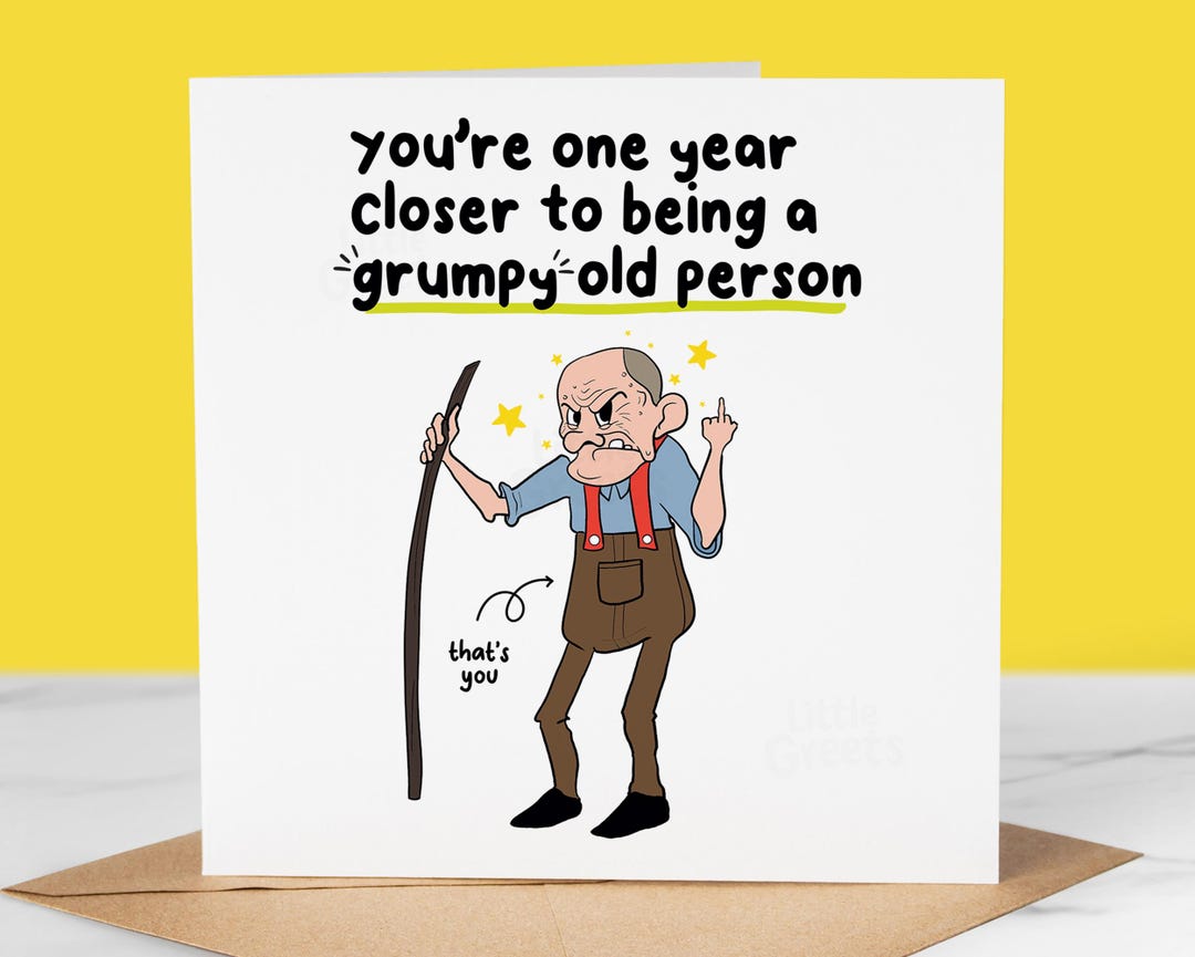 Personalised Birthday Card, Grumpy Old Person, Funny Birthday Card, Pun ...