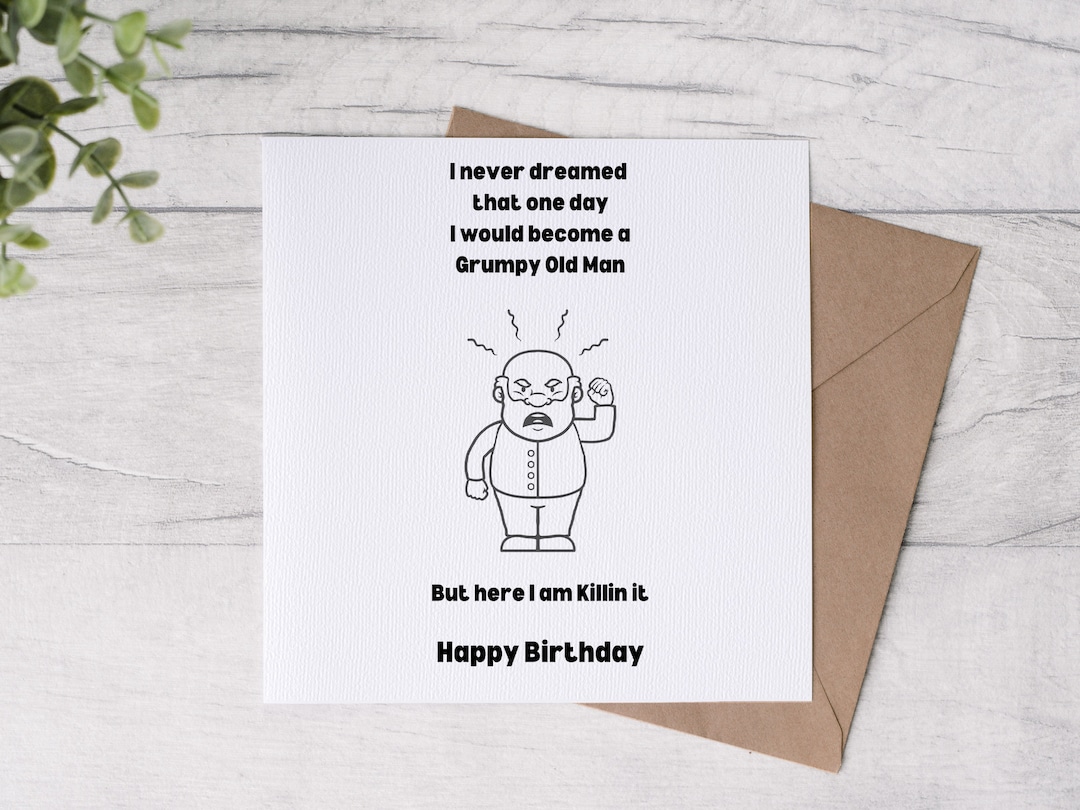 Funny Birthday Card Grumpy Old Man Funny Greeting Card AJS STUDIOS - Etsy
