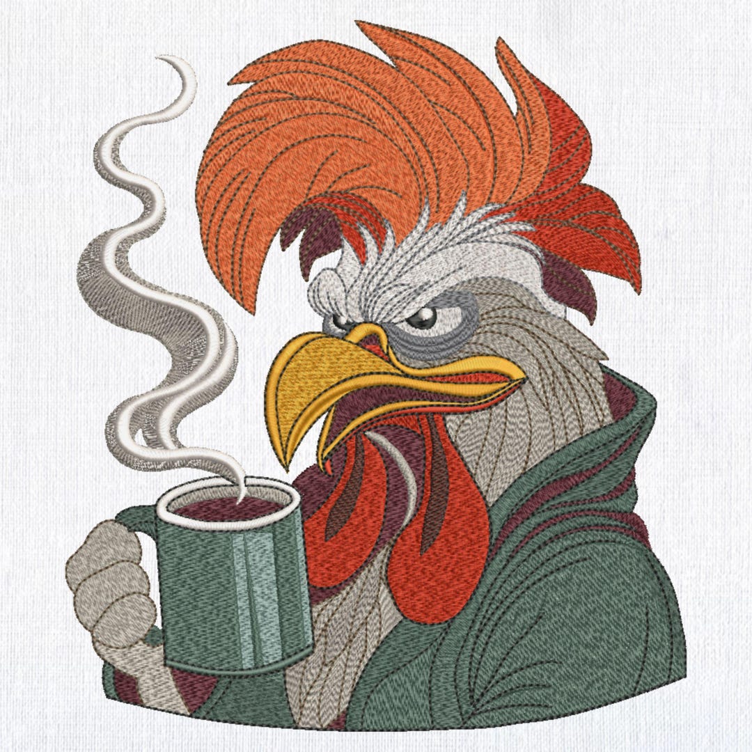 Grumpy Coffee Rooster Embroidery Design: Funny Animal PES Pattern (8 ...