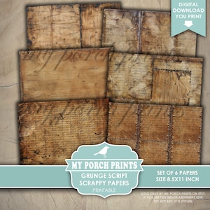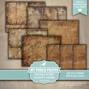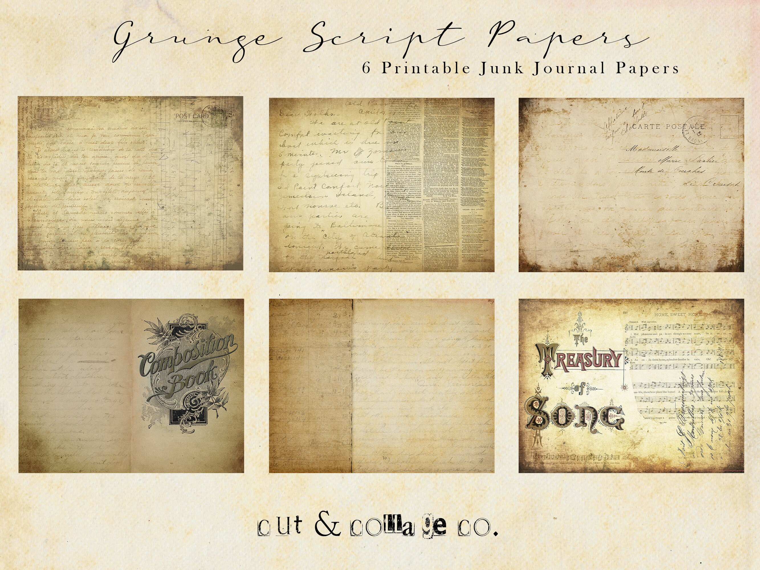 Grunge Script Printable Junk Journal Collage Papers, Vintage Inspired ...