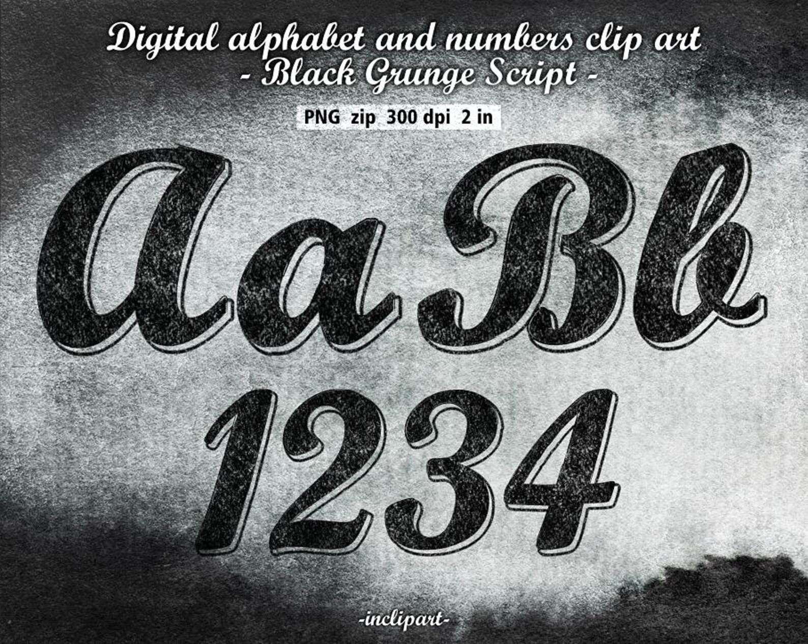 Alphabet black grunge script clipart digital coal black textured ...