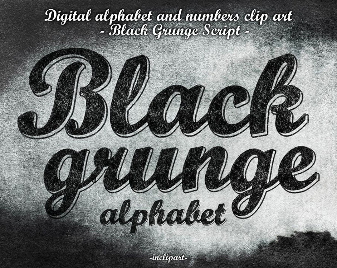 Alphabet Black Grunge Script Clipart. Digital Coal Black - Etsy Canada