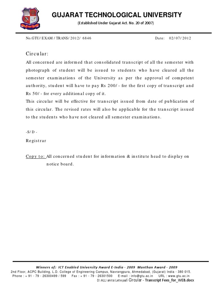 Transcript Cert Gtu Circular | PDF