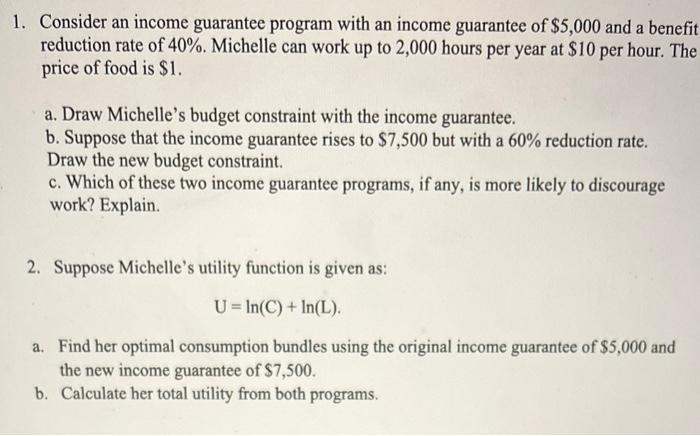 Solved 1. Consider an income guarantee program with an | Chegg.com