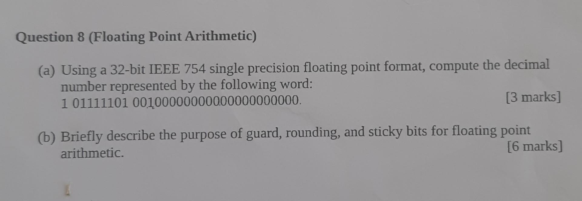 Solved Question 8 (Floating Point Arithmetic) (a) Using a | Chegg.com