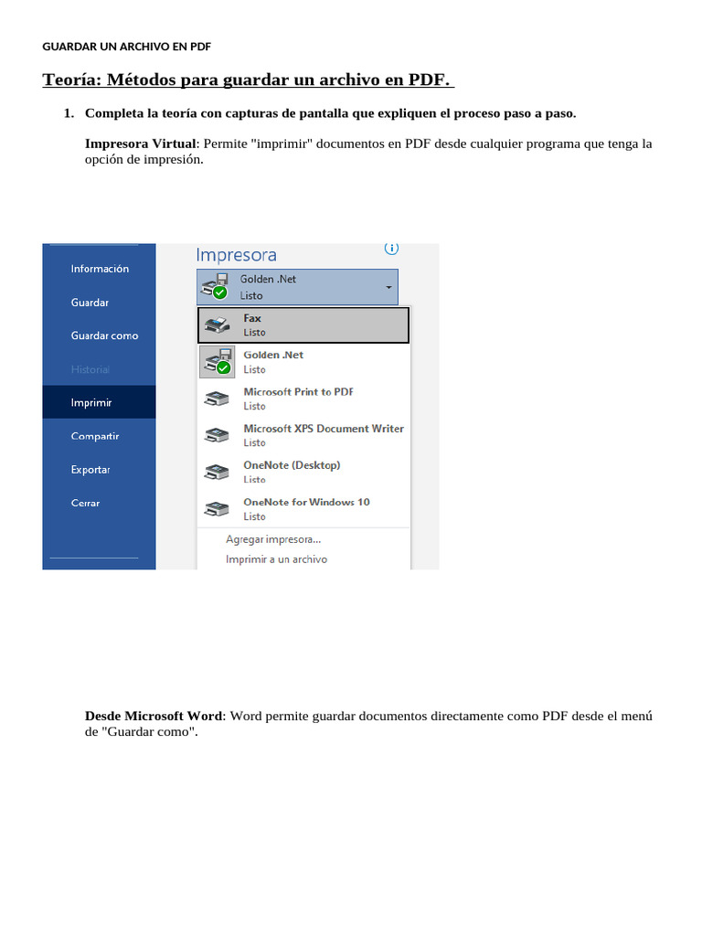 Guardar o Convertir A PDF o XPS en Aplicaciones de Escritorio | PDF
