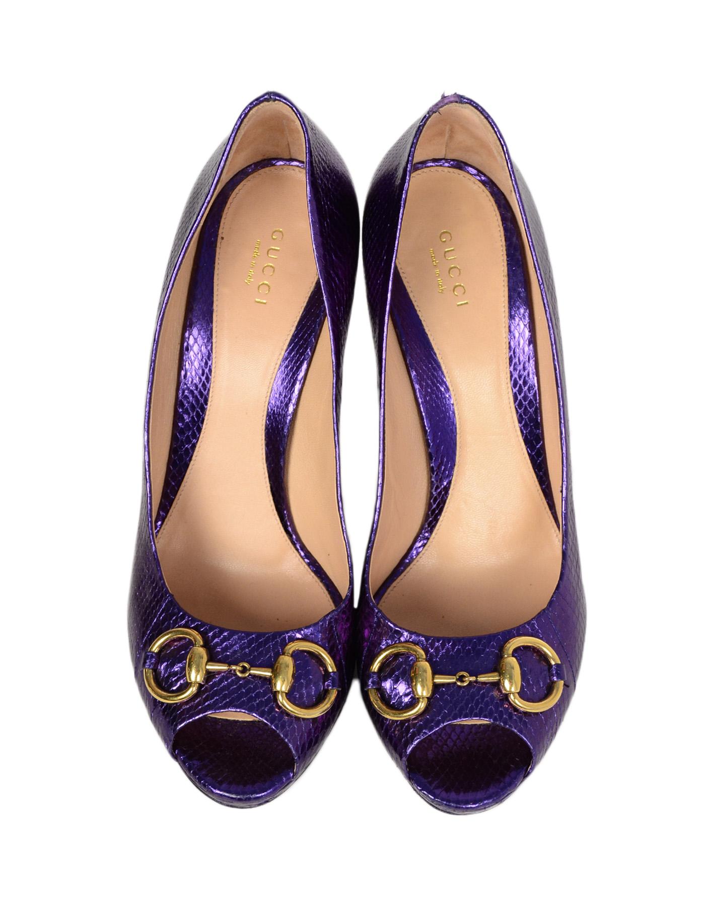 Gucci Purple Python Horsebit Peeptoe Pumps sz 40 For Sale at 1stDibs