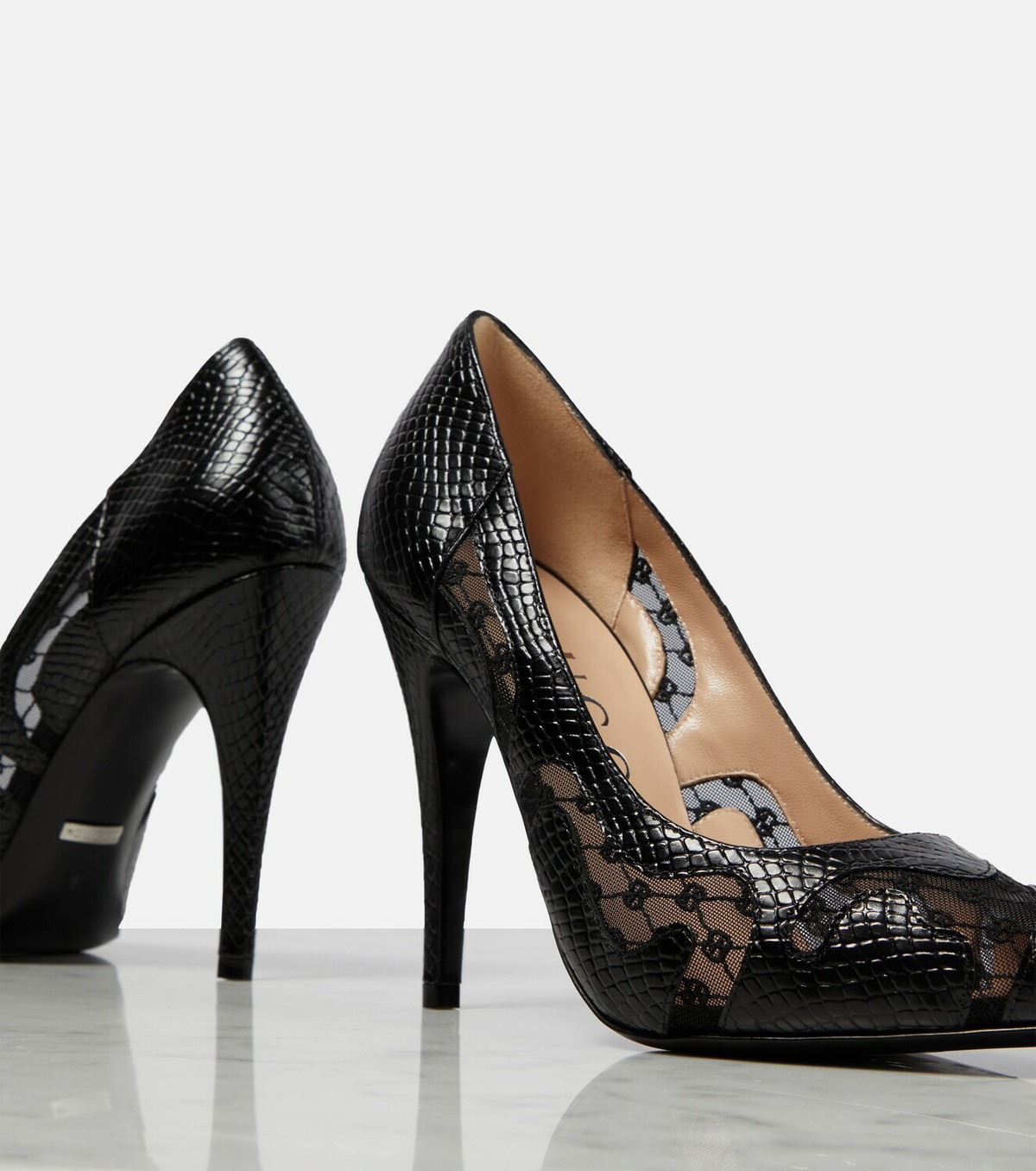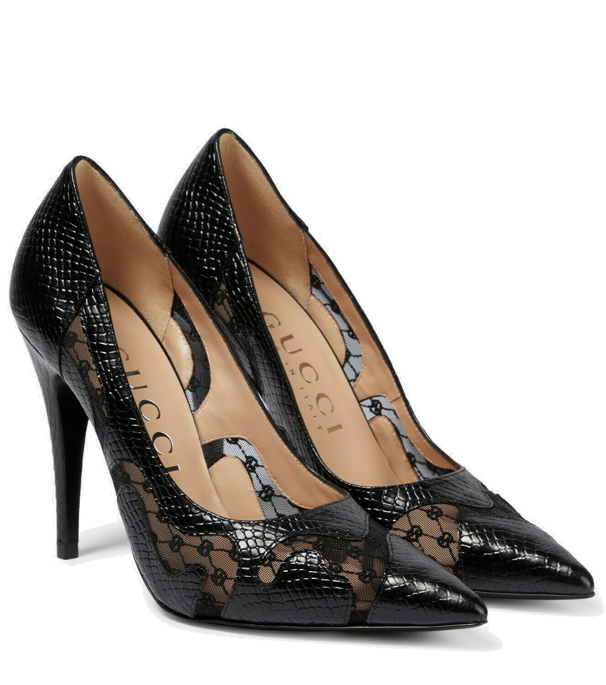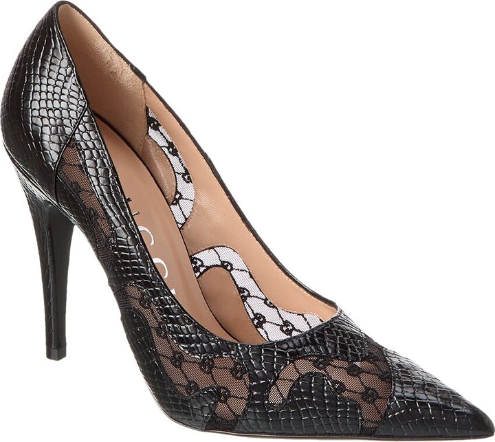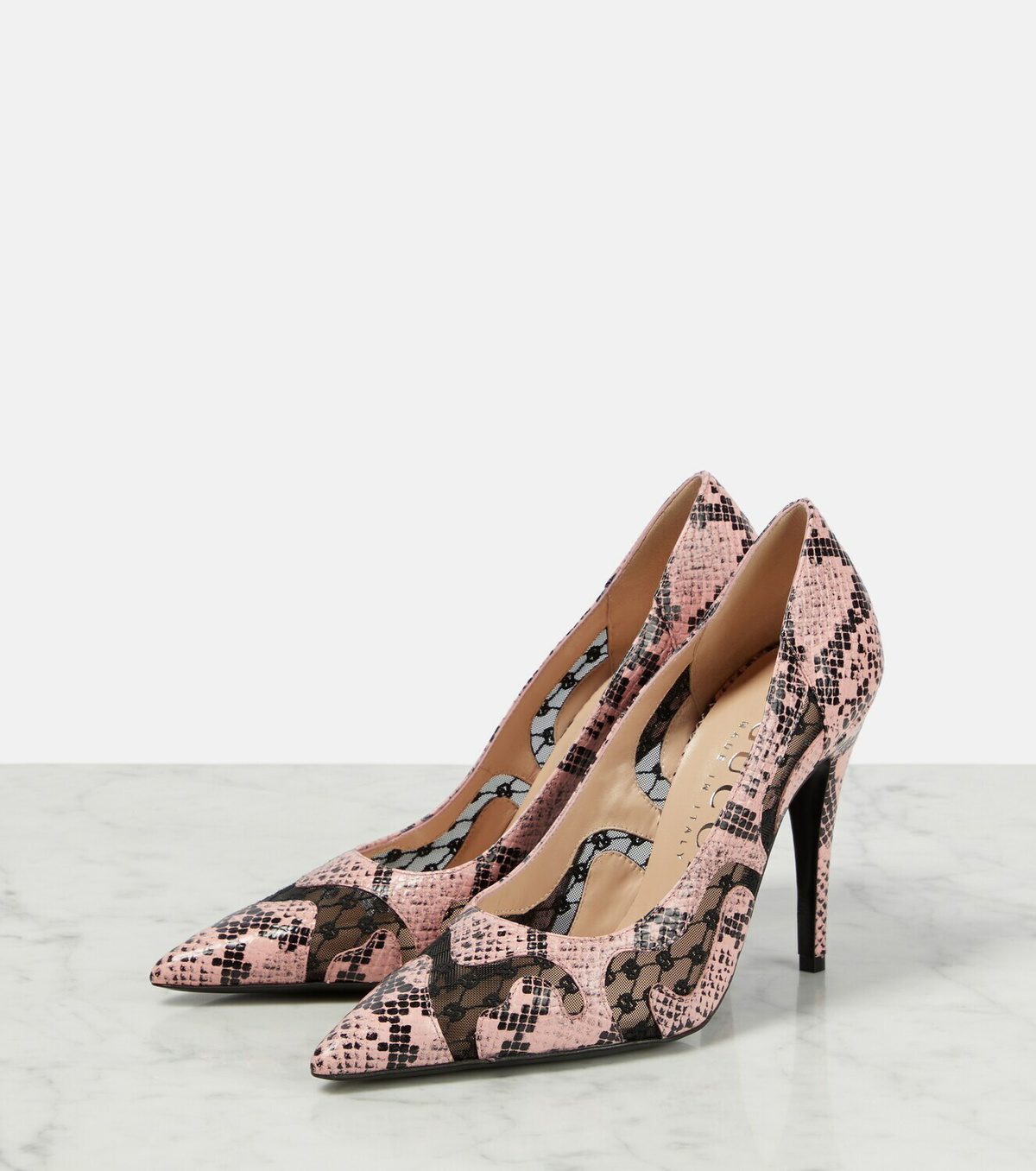 Gucci Logo Python-Embossed Leather & Mesh Pump - ShopStyle Heels