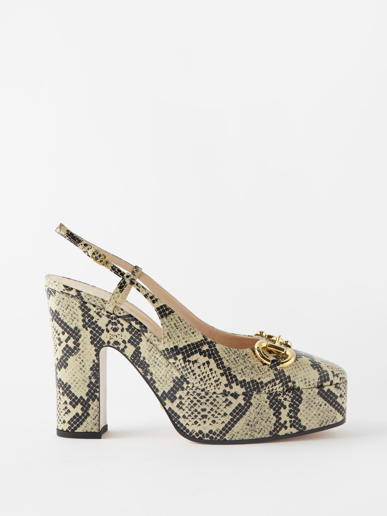 GUCCI Python-Effect Leather Slingback Platform Pumps in Beige | Endource