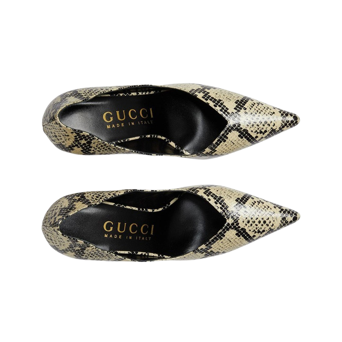 Gucci Python Print Leather Pumps - Beige | Editorialist