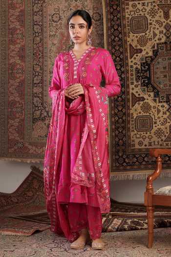 Buy Pink Cotton Silk Hand Embroidery Gul Pattern Straight Kurta Set For ...