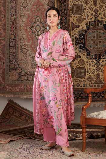 Buy Pink Cotton Silk Hand Embroidery Floral Gul Pattern Kurta Palazzo ...