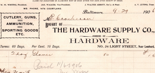 1906 Baltimore Hardware Supply Guns Ammunition Sporting Goods Invoice ...