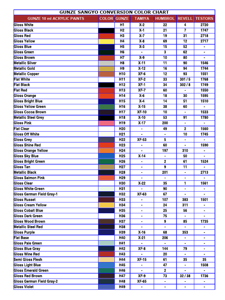 Gunze Sangyo Color Conversion Chart | PDF | Grey | Blue